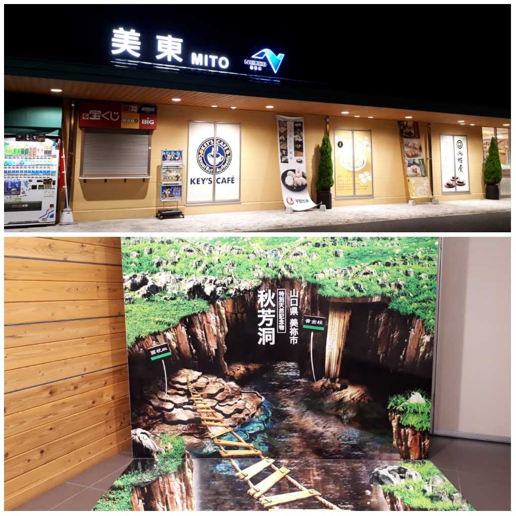 (2020-05-15) 上りも広くて充実してます。ふぐや瓦そば等山口らしいグルメあり。2018年9月撮影。 |