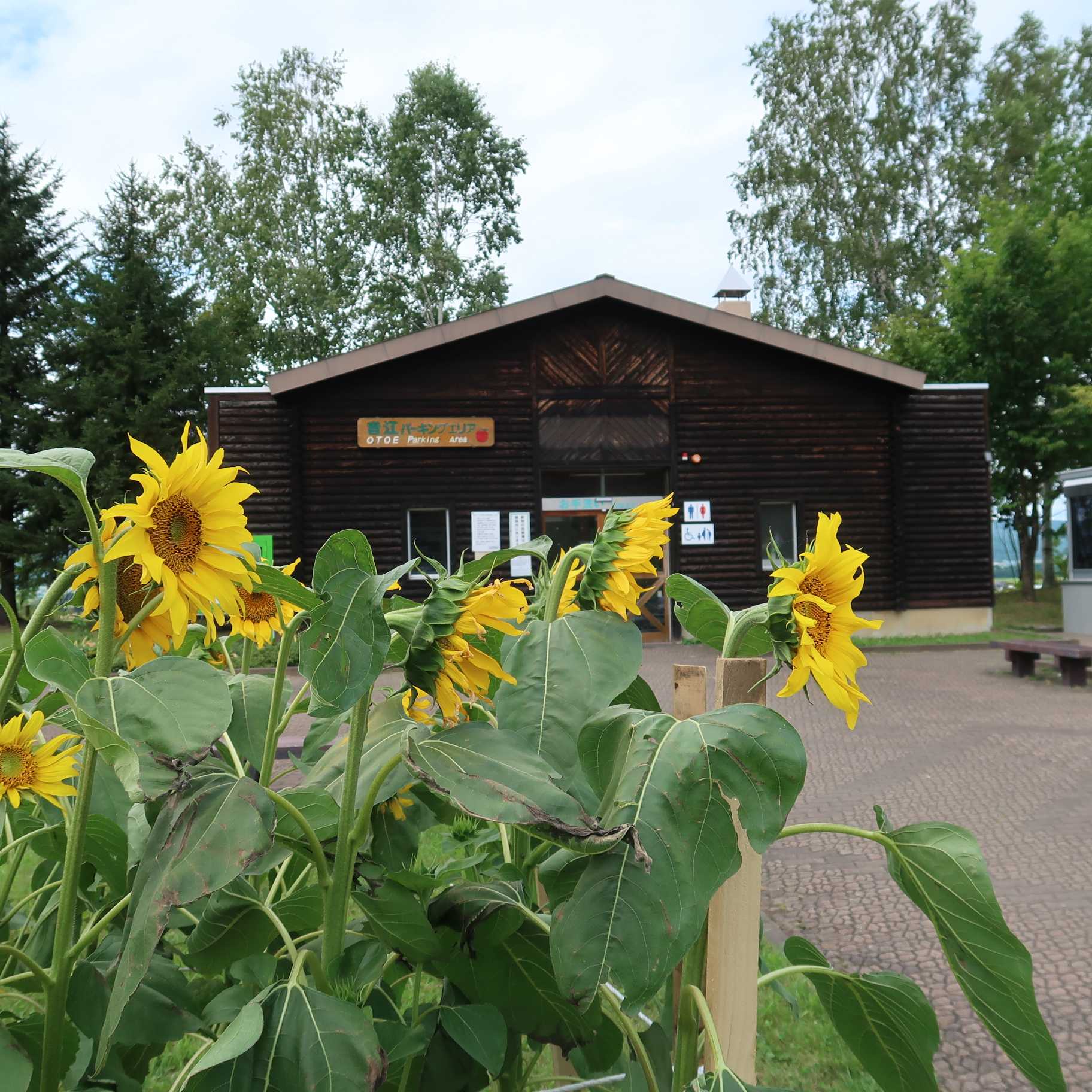 (2020-08-09) トイレのみPAだがウッディな建物と小さなひまわり畑があっていい感じ(^^) そう言えばここから北竜のひまわり近いですね。近くを通るし寄ってみようかな♪ |