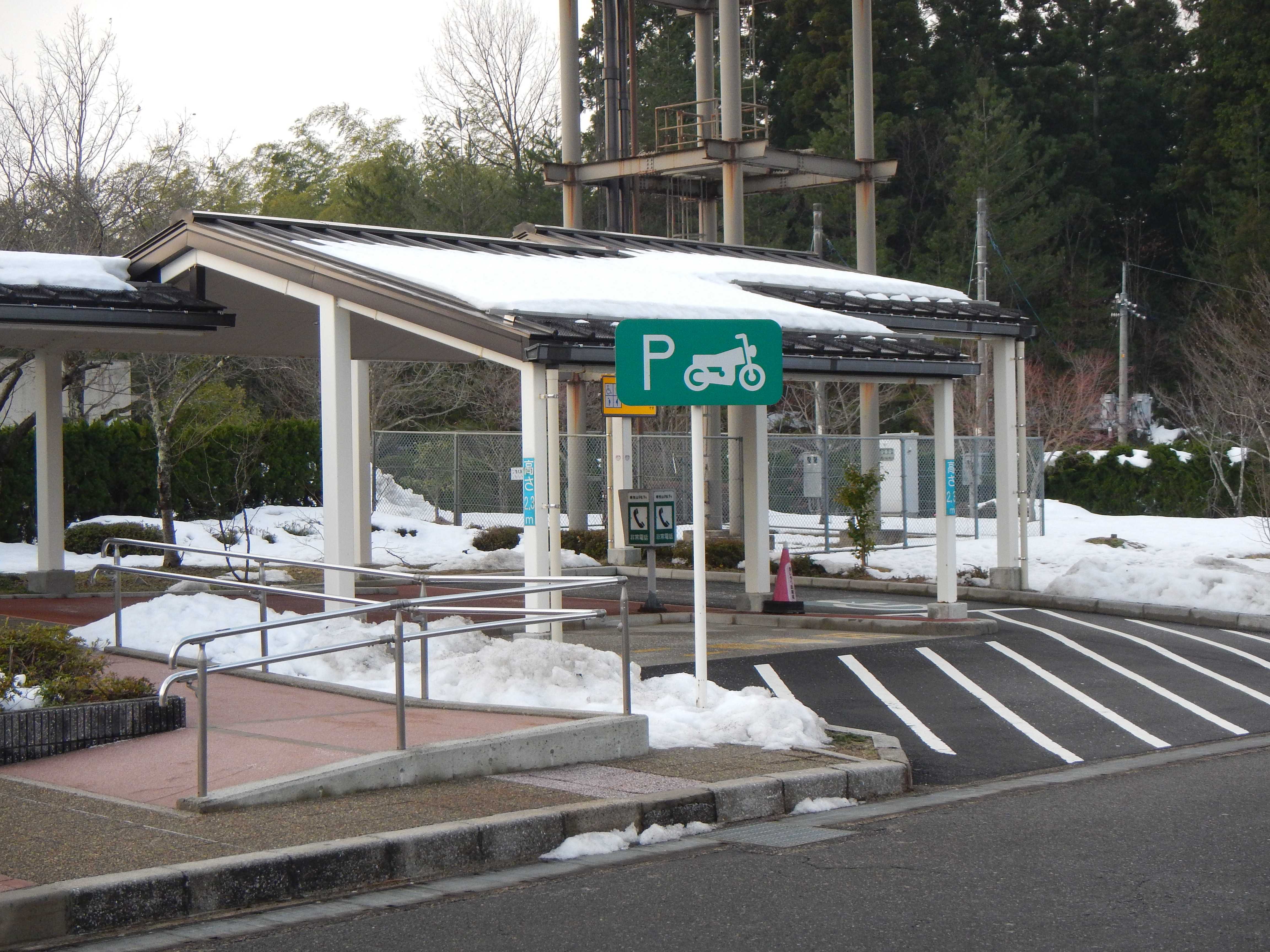 寒曳山PA(下り線(浜田方面)) 2014-12-30 年末スキーで立ち寄りました。トイレと自販機だけですが、二輪用の駐輪スぺースには屋根が付いています。 |